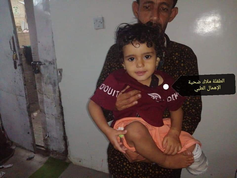 أدى خطأ طبي في محافظة اب وسط البلاد الى بتر رجل طفلة واصابتها بالإعاقة.