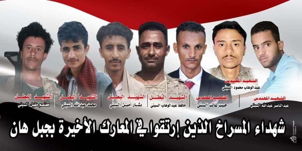 وأشاد المشيعون بمناقب الشهداء الابطال وهم الشهيد المهندس عبدالناصر عبدالله بن عبدالله عبدالغني السبئي، والشهيد المهندس عبدالوهاب محمود عبدالغني سعيد السبئي، والشهيد المهندس حبيب غالب هزاع السبئي، والشهيد معتصم مقبل ناجي السبئي، والشهيد حافظ عبدالوهاب علي محمد السبئي، والشهيد محمد عبدالله مقبل السبئي، والشهيد بشار أمين عبدالله يحيى السبئي، الذين قدّموا اروحهم فداءً للوطن وفي سبيل مواجهة الحوثيين الحوثية لاستعادة الشرعية والدفاع عن المكتسبات الوطنية .
