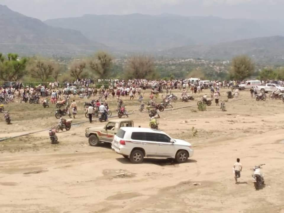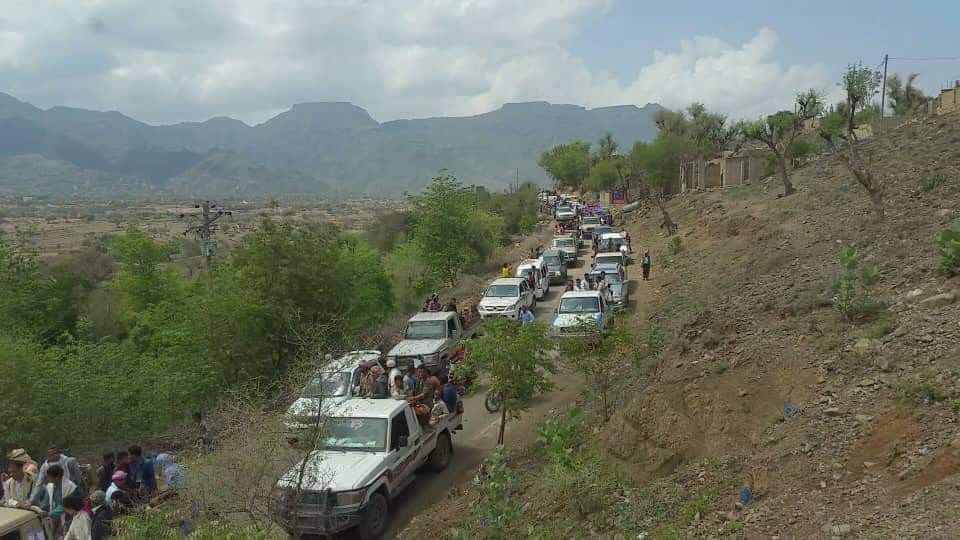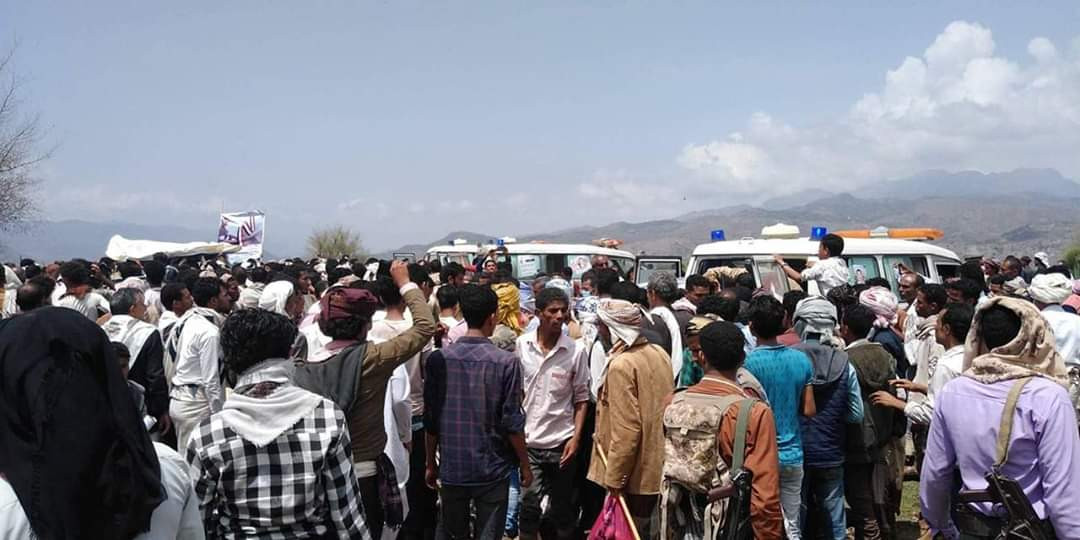 وانطلق موكب تشييع جثامين السبعة الشهداء الابطال من مدينة تعز، إلى مسقط رأسهم مديرية المسراخ، حيث تم موارة جثامينهم الطاهرة هناك.