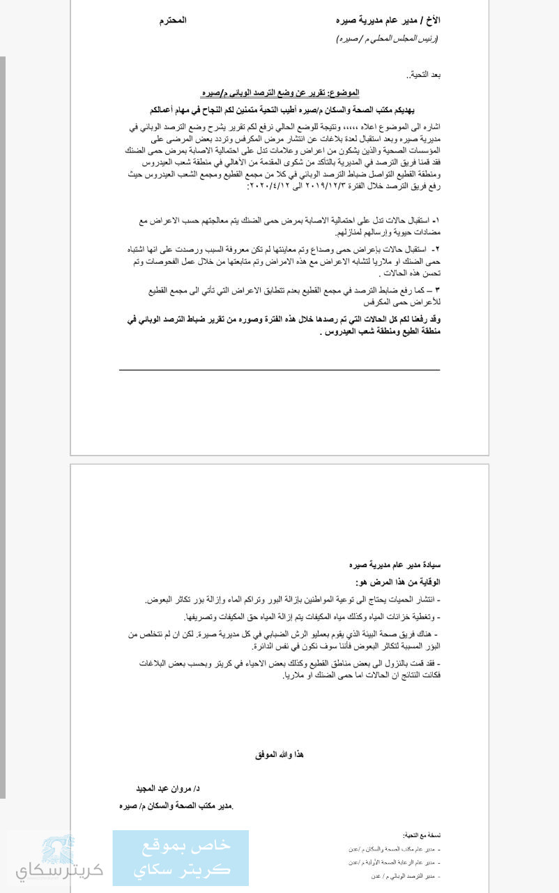 وقال مكتب الصحة:ان سبب الاصابة بحمى الضنك يعود الى المياه الراكدة واغطية الخزانات المفتوحة والتي تعتبر بؤرة لانتشار البعوض الناقل للمرض.