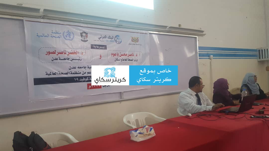 برعاية وزير الصحة الدكتور ناصر باعوم و رئيس جامعة عدن الدكتور الخضر لصور تقيم هذه الأثناء دورة تدريبية لإدارة حالة كوفيد 19.