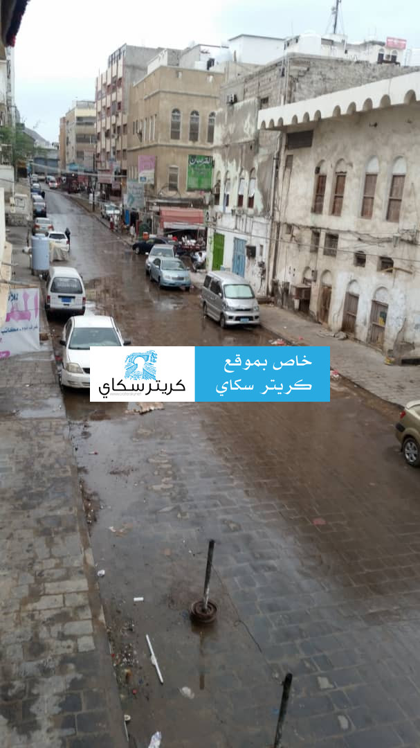 وهطلت الأمطار بغزارة في أنحاء متفرقة من مدينة كريتر بعدن.