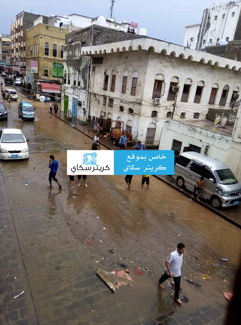 وقال مواطنون لكريتر سكاي أن مياه السيول الراكدة في المدينة منذ يوم الثلاثاء الماضي تسببت بسقوط امرأة وإصابتها في قدمها وسط سوق الزعفران في كريتر.