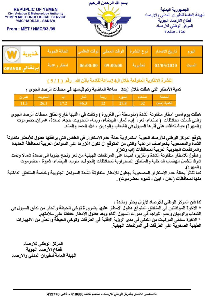 ينشر كريتر سكاي النشرة الإنذارية المتوقعة للطقس خلال ال24 ساعة القادمة في محافظات الجمهورية