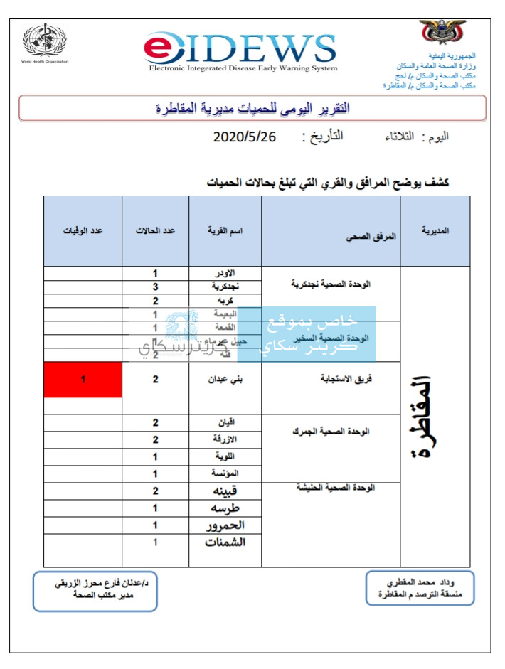 حصل كريتر سكاي على نسخة من تقرير يظهر فيها توضيحا عن المصابين بالحميات المنتشرة في غرب لحج.