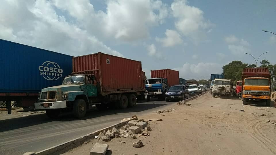 وتحدث السائقين أن أسباب توقف حركة النقل يعود الى ازدحام الشاحنات في ميناء وجمارك عدن حتى وصل طابور الشاحنات من داخل الميناء ممتداً على الخط العام من كابوتا الى منطقة الحسوة مما تسبب في ازحادم مروري شديد ويعود السبب الرئيسي لضعف القدرة الاستيعابية لدى الميناء والجمارك وازدحام المساحات بالشاحنات وضيق الطرقات فيها.