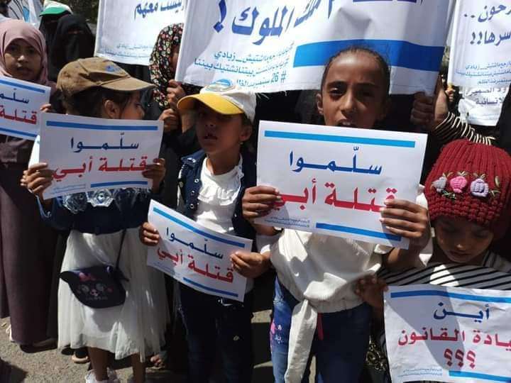وشارك أبناء القتيل في المسيرة رافعين لافتات مكتوب عليها: سلموا قتلة ابي.