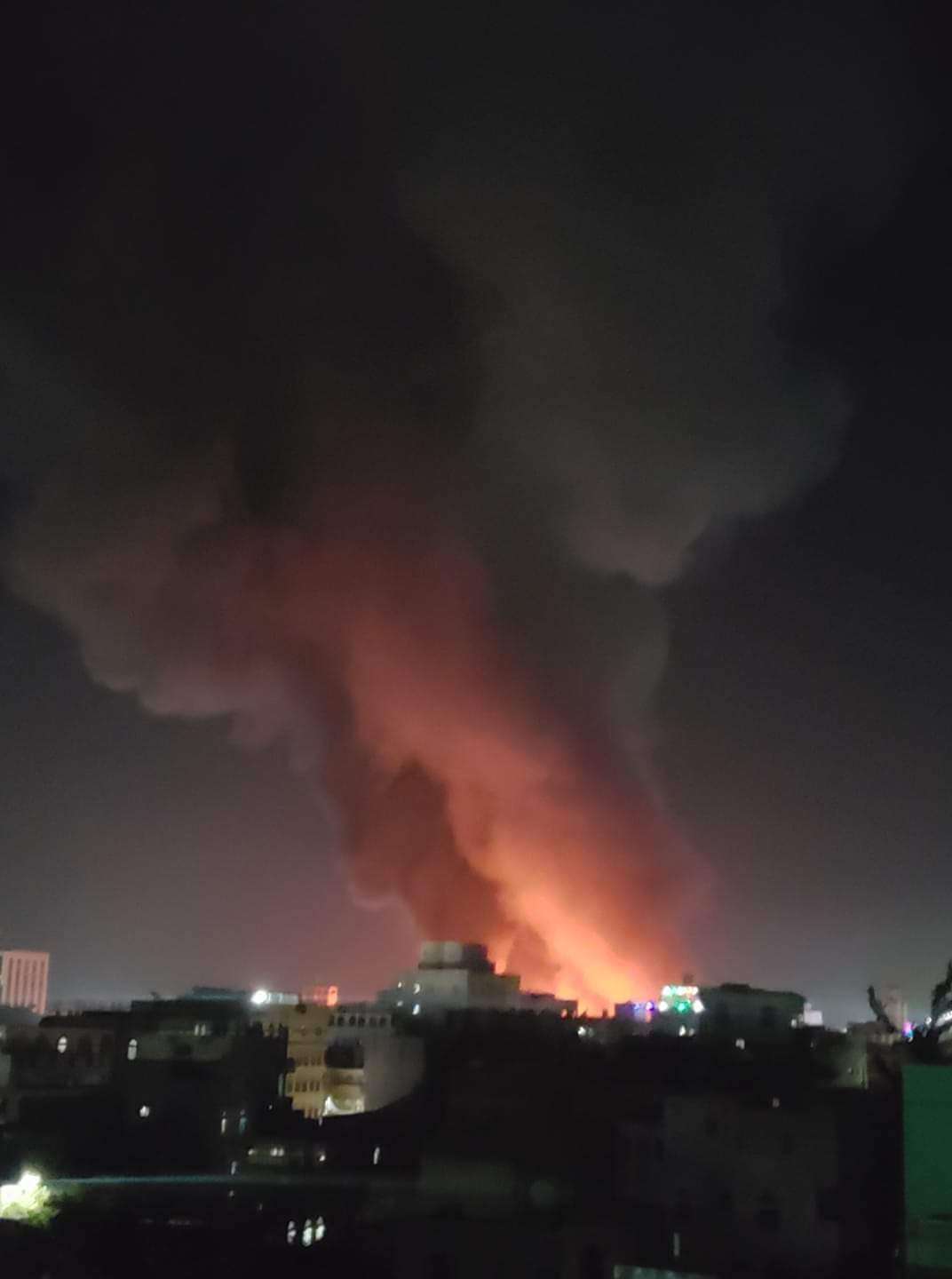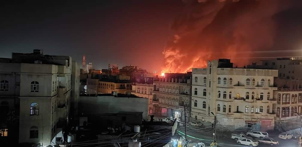 اندلع حريق هائل في حي شميلة بالعاصمة صنعاء بسبب التماس كهرباء.