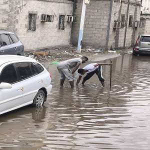 مديرية الشيخ عثمان بعدن تغرق بمياه الأمطار وتفضح المشاريع الهشة للتصريف