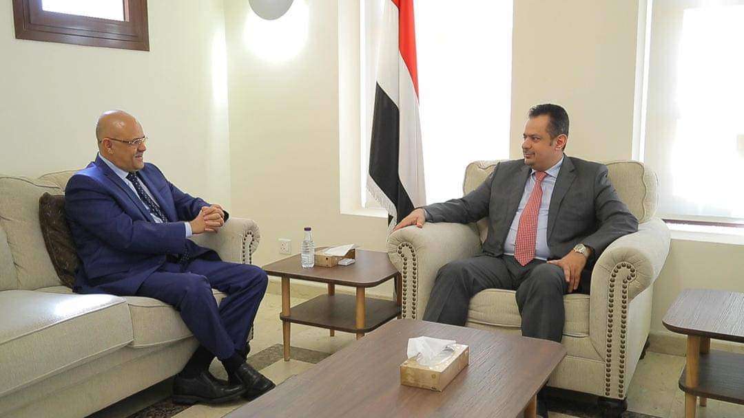 التقى دولة رئيس الوزراء الدكتور معين عبدالملك اليوم بمحافظة تعز نبيل شمسان .