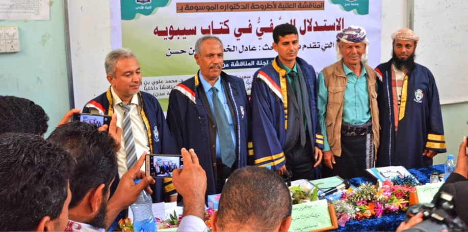 أحتضنت كلية الآداب ب"جامعة عدن" , صباح اليوم الأحد, المناقشة العلنية لاطروحة الدكتوراره الموسومة ب: الاستدلال الصرفي في كتاب سيبويه"للباحث عادل الخضر حسين حسن.