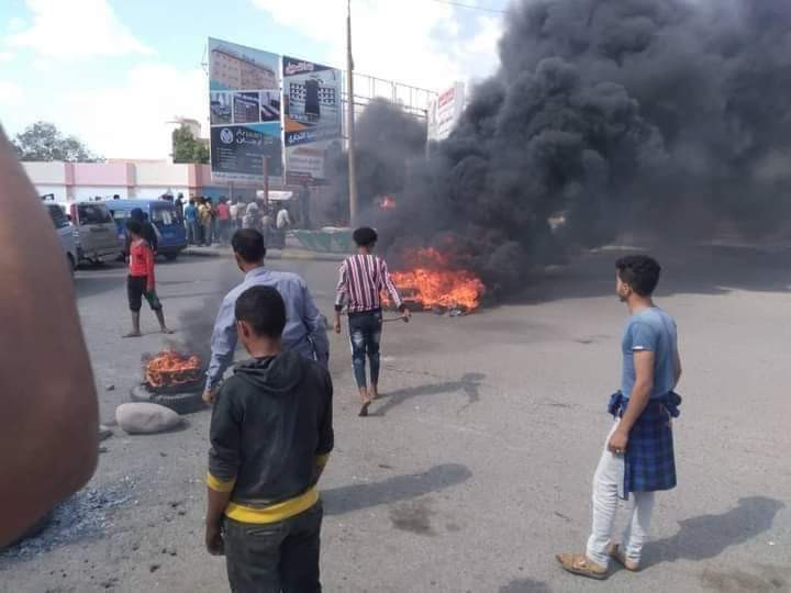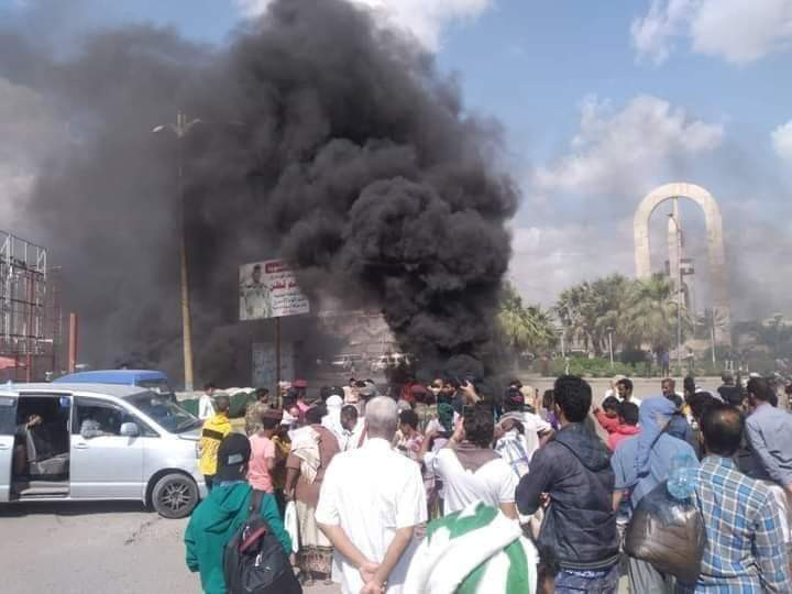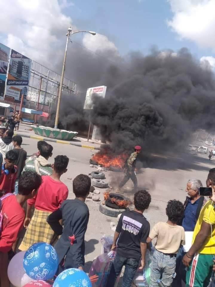 واشعل محتجون النيران في طرق رئيسية بمدينة عدن وسط غضب عارم.