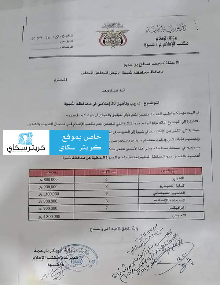 ـ 27000 دولار لانشاء مؤسسة اعلامية #شبوة