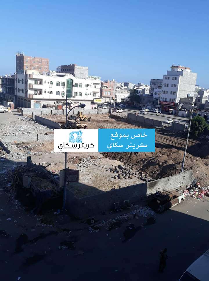 ويظهر في الصورة ارضية تقع امام فندق سماء عدن بجوار الصلاحي للصرافة في شارع السجن .