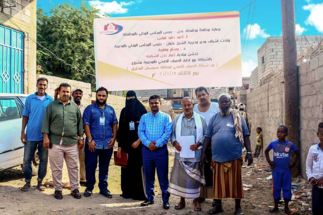 دشن مدير عام مديرية الشيخ عثمان بمحافظة عدن ، الدكتور وسام معاوية سعيد ، اليوم " الثلاثاء " ، العمل في مشروع تركيب شبكة الصرف الصحي في حي المنكوبين بالسيسبان في منطقة المحاريق ، والذي ينفذه مبادرة " إعمار عدن الشبابية " ، بالشراكة مع إدارة الصرف الصحي في المديرية.