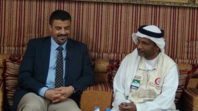 مشيرا الى بعض انجازات الهلال الاحمر الاماراتي وبرامجه في المجال الخدمي ومنها مشروع بناء محطة كهرباء بقدرة مائة ميجا والخطوات اللاحقة لاستكمال تنفيذ المشروع بالاضافة الى مشروع اعادة تاهيل مستشفى الجمهورية .