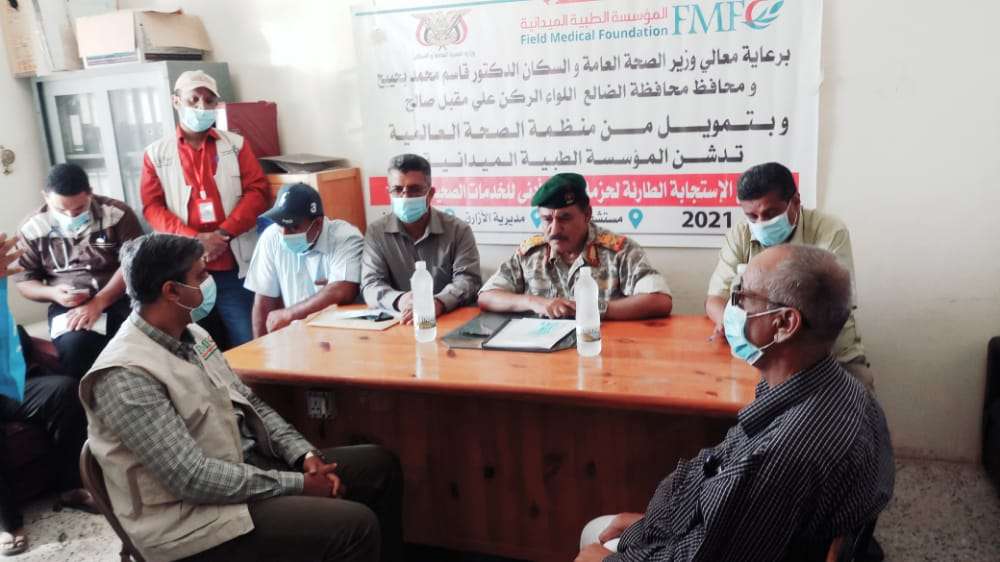دشنت المؤسسة الطبية الميدانية في محافظة الضالع صباح اليوم الإثنين مشروع الاستجابة الطارئة لحزمة الحد الادنى للخدمات الطبية الذي يستهدف مديرتي الازارق والحصين إلى جانب مستشفى النصر العام في مدينة الضالع