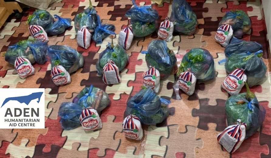 دشن مركز عدن للأعمال الإنسانية، مشروع توزيع الوجبات الغير مطهية لعدد مئه اسرة في محافظة عدن.