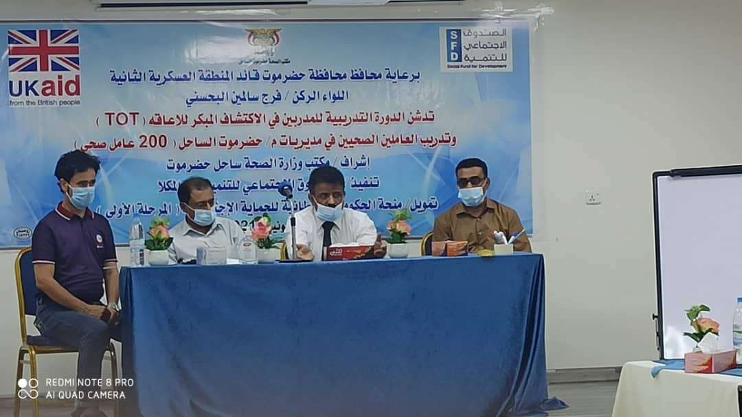 اختتمت بمركز طب الأسرة بجامعة حضرموت فعاليات الدورة التدريبية لتدريب المدربين ( TOT) للعاملين الصحيين بالمرافق الصحية بمديريات حضرموت الساحل التي نظمها مكتب وزارة الصحة العامة والسكان بتمويل من الصندوق الاجتماعي للتنمية فرع المكلا ضمن منحة الحكومة البريطانية للحماية الأجتماعية الذي استمرت على أسبوع كامل بمشاركة 14 متدرب ومتدربه من الأطباء نفذها كل من المدربين : الدكتور محفوظ رمضان باعوضان والدكتور هادون علي العطاس.