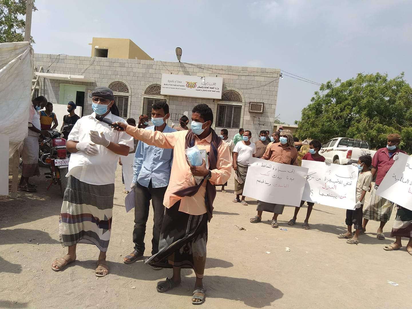 وجاءت الوقفة تنديدا بالاهمال والتقصير في مركز العزل الخاص بعلاج مرضى فيروس كورونا في الوعرة بالخوخة.