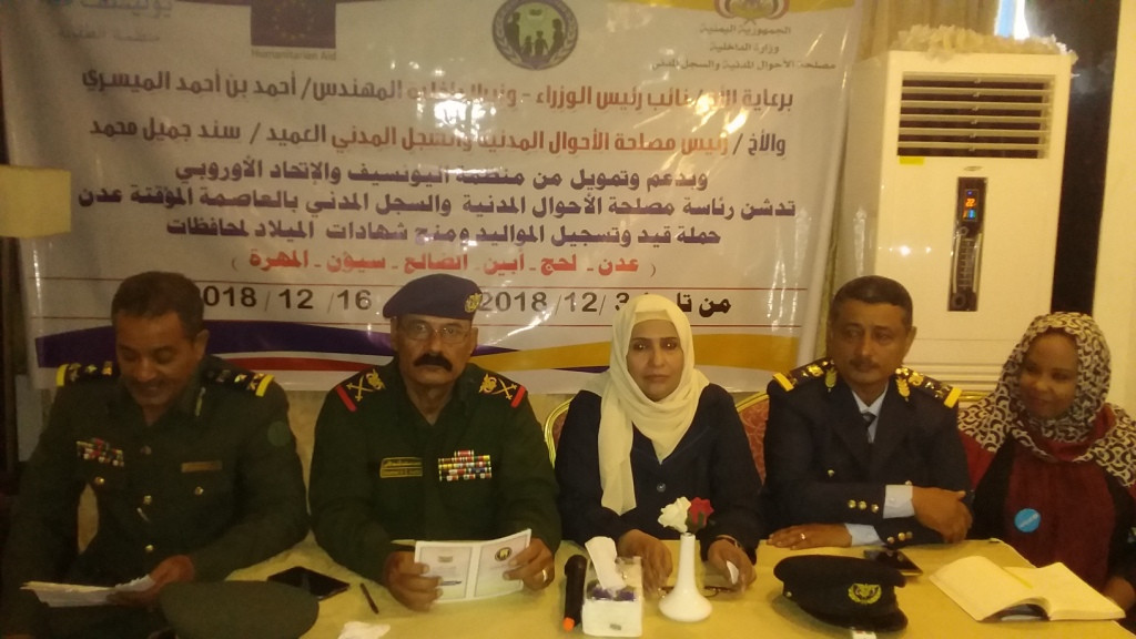 وخلال عملية التدشين التي تأتي برعاية نائب رئيس مجلس الوزراء وزير الداخلية المهندس احمد الميسري وبدعم وتمويل من منظمة اليونيسيف والاتحاد الأوروبي _ أكد وكيل وزارة الداخلية لخدمات الشرطة اللواء محمد مساعد على أهمية شهادات الميلاد لارتباطها بهوية الطفل وحياته وهو الأمر الذي تسعى من خلاله قيادة وزارة الداخلية ممثلة بالمهندس أحمد بن احمد الميسري بتحديث السجل المدني وفقا للتطور التكنولوجي الذي يسهل حصر وتقيد عدد السكان بطريقة رقمية حديثة .