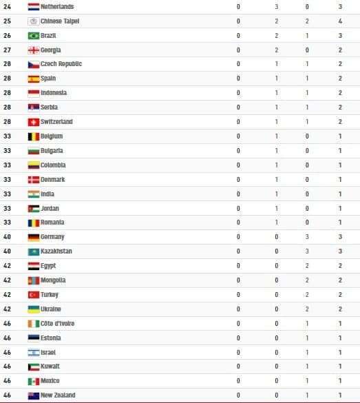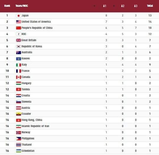 استطاعت اليابان انتزاع صدارة جدول الترتيب، تاركة الولايات المتحدة في المركز الثاني، ثم الصين كثالث للترتيب.