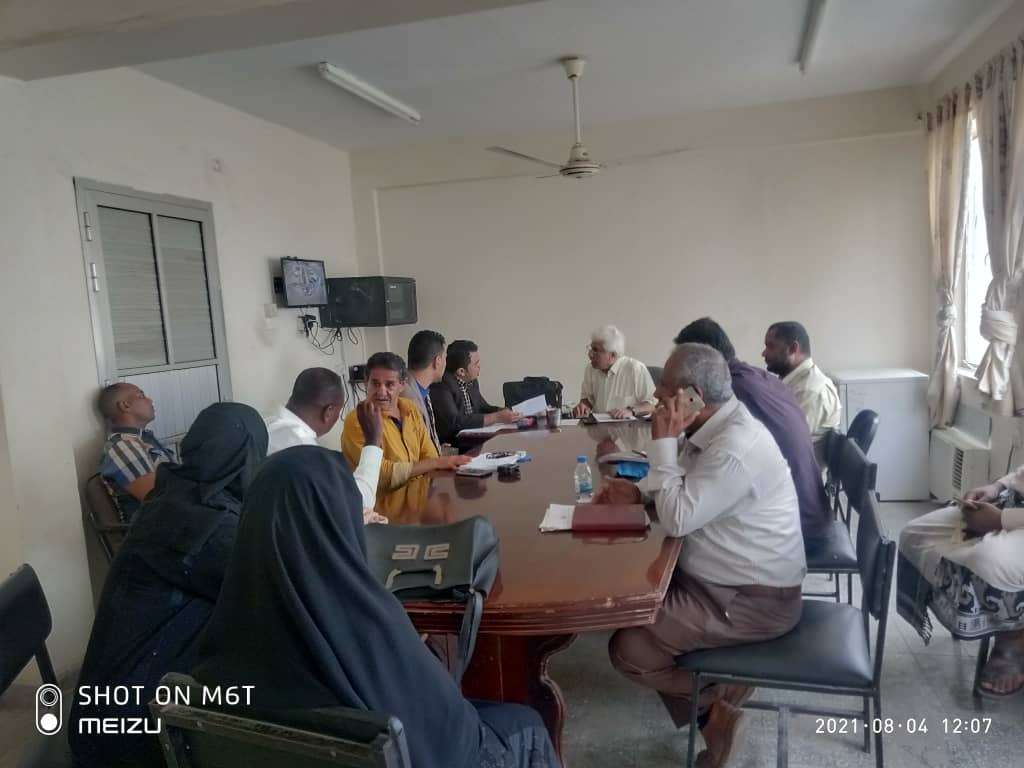 عقد بالديوان العام بمبنى السلطة المحلية بمديريةوالتواهي اجتماعا برئاسةالمهندس كتبي عمر كتبي مدير عام مديرية التواهي والاستاذ عرفات علي قاسم مدير عام مكتب الشباب والرياضة بعدن