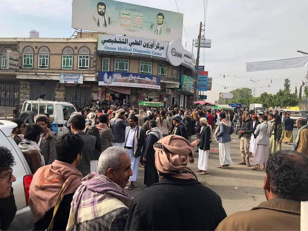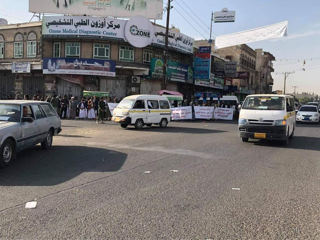 تجمع العشرات من أهالي المحكوم عليهم بالاعداد قبل لحظات من كتابة الخبر في خط المطار لمطالبة اولياء دم الشهيد عبدالله الاغبري بالعفو لوجه الله عن قتلة نجلهم.