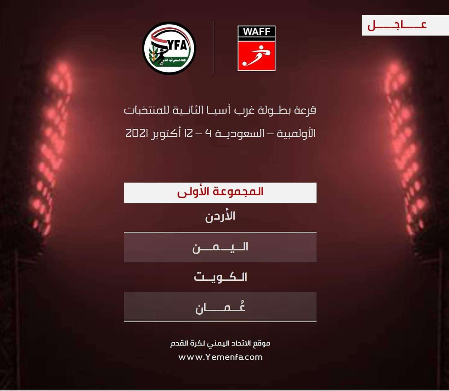 وضعت قرعة بطولة غرب آسيا للمنتخبات الأولمبية، منتخبنا الوطني إلى جانب منتخبات الأردن، الكويت، عُمان.