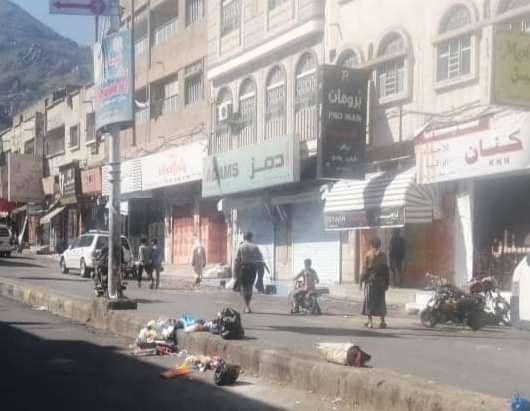 شهدت مدينة تعز صباح اليوم إغلاق تام للمحلات التجارية.