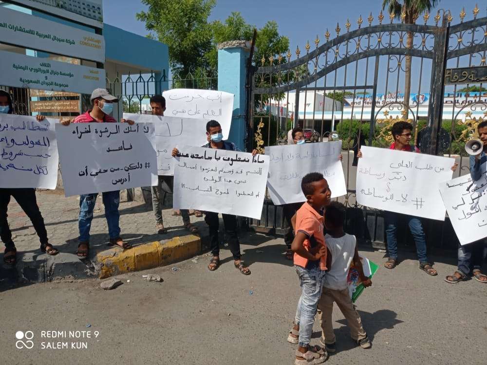نظم طلاب السنة التحضيرية في كلية الطب بجامعة عدن صباح يوم السبت الموافق السادس عشر من الشهر الحالي وقفة احتجاجية في مبنى االجامعة “كلية الطب ” وامام مبنى ،الديوان الجامعي، طالبوا فيها من رئاسة الجامعة أن تعيد النظر وأن تتجاوب لمتطالباتهم، وأن تدرك حجم الكوارث التي سوف تؤدي إلى عواقب لايحمد عقباها إن لم يتم رفع سقف الطلاب المقبولين وإزالة الطريقة العقيمة في وضع إختبارات القبول وإستراتيجية التدريس في السنة التحضيرية التي لا تتوافق مع ظروف الطلاب والتي تساهم كثيرا في ظلم الطلاب وإقصاءهم من مستقبلهم الدراسي.