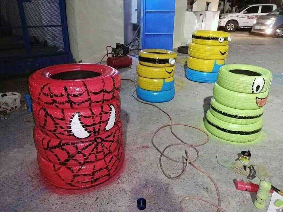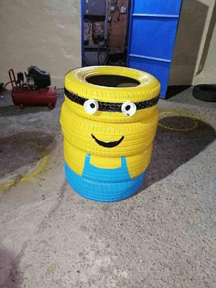 ابتكر فنان تشكيلي طريقة جميلة لاعادة تدوير اطارات السيارات التالفة بعدن.