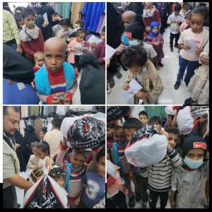 وزع محل ملابس تايفون ورفلي اليوم 60 كسوة عيد لأطفال من ذوي الهمم ومرضى السرطان والأيتام في الع...